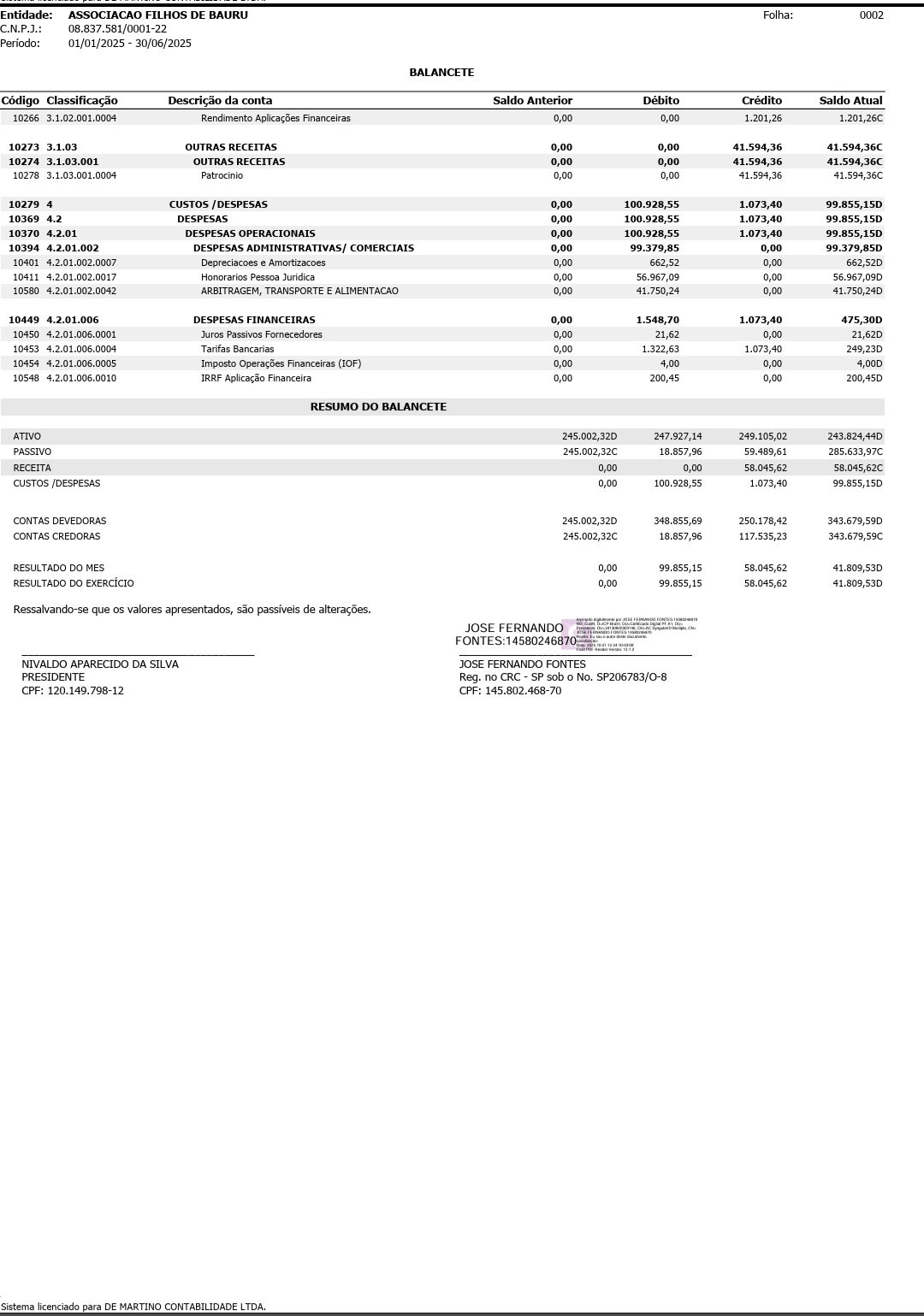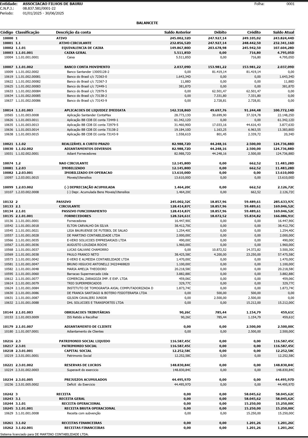 Balancete Acumulado - 2025